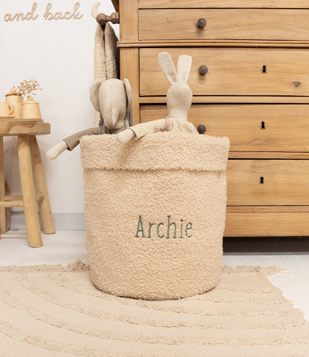Boucle speelgoedmand geborduurd // Naturel