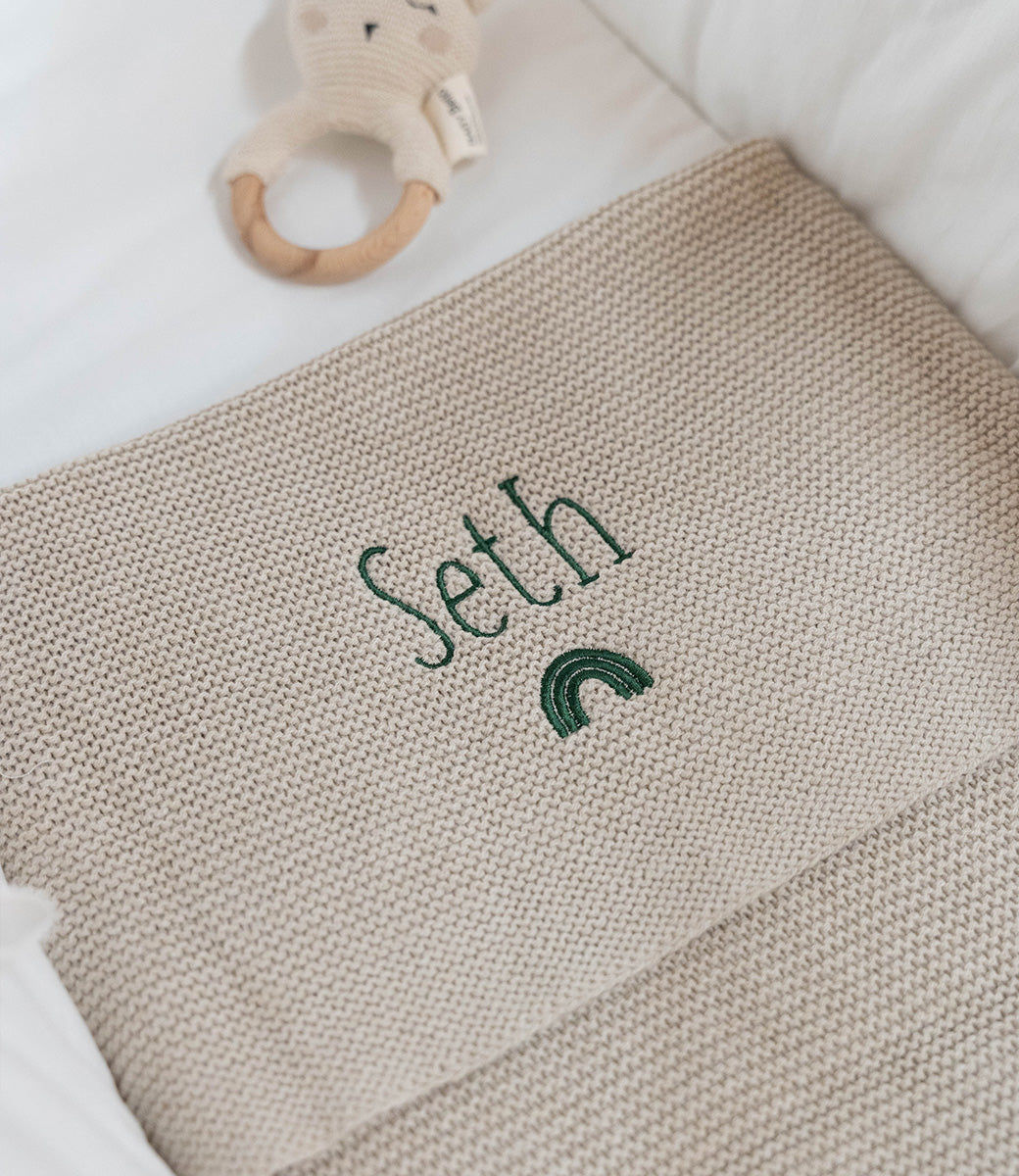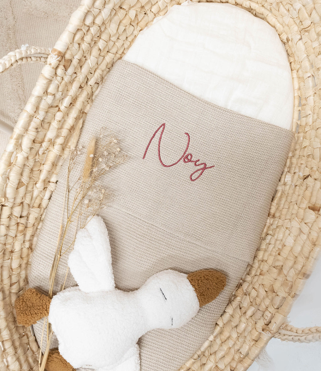 Babydeken incl. naam borduren // Basic knit - Nougat