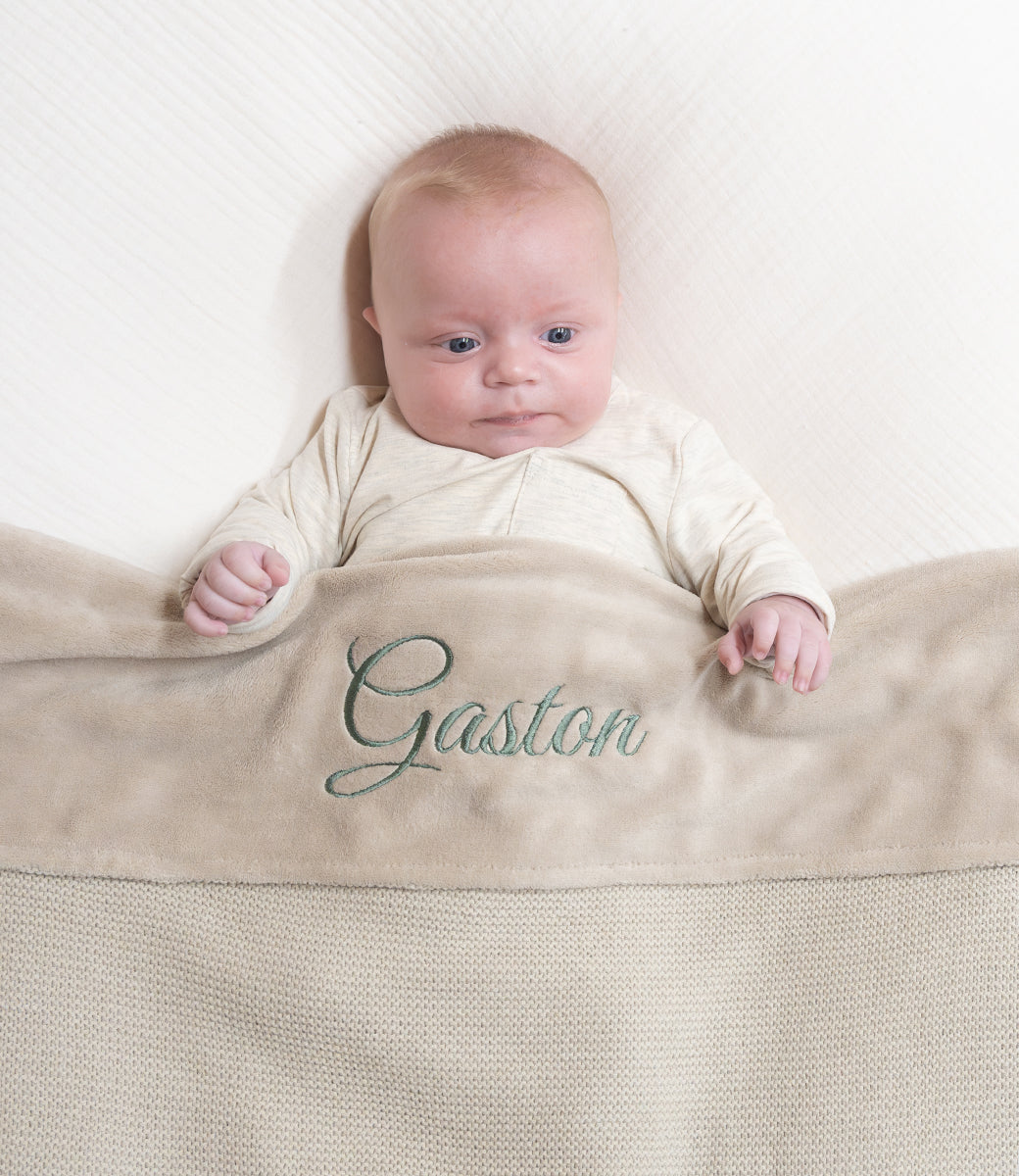 Winter deken incl. naam borduren // fleece basic knit - Nougat