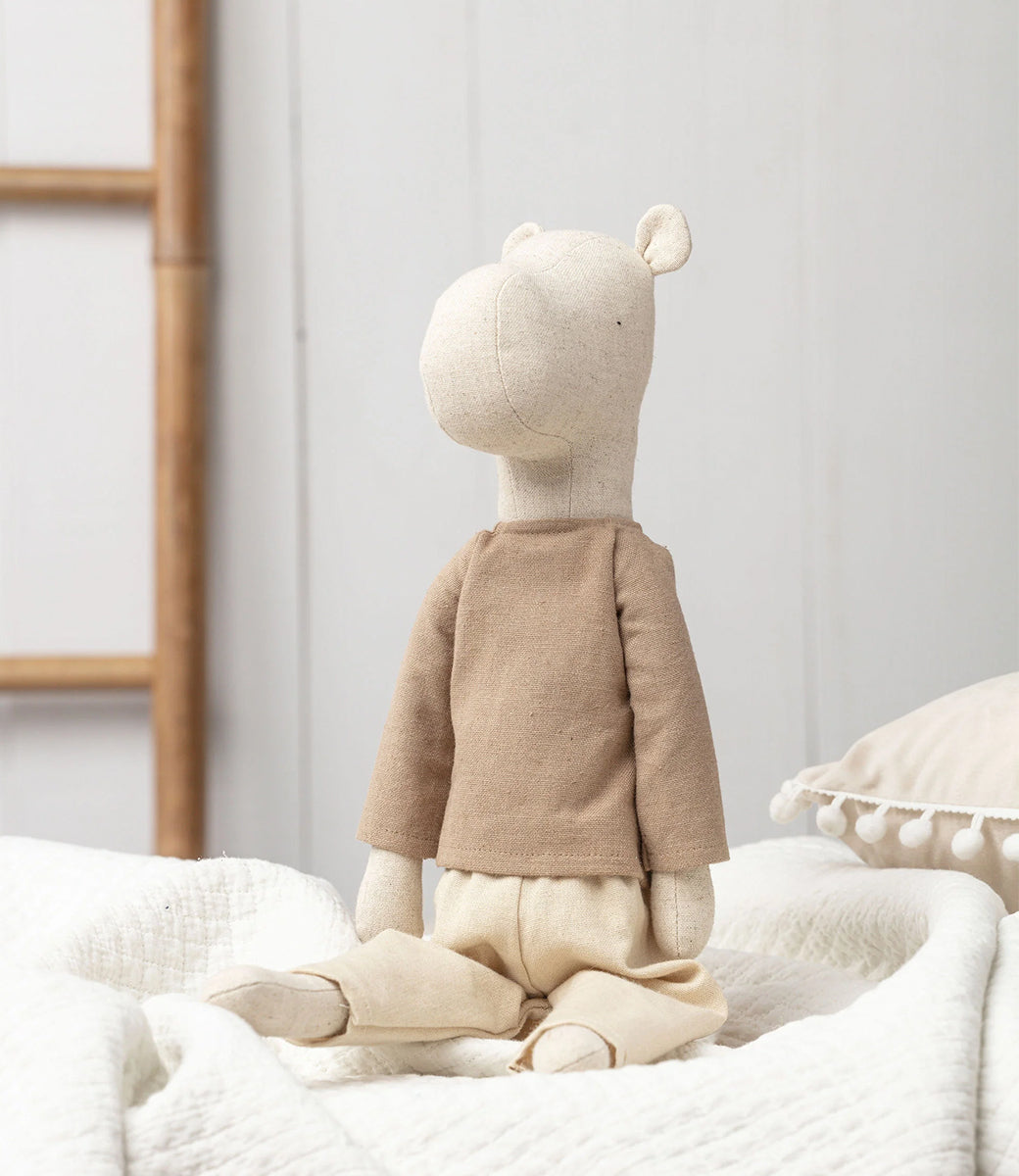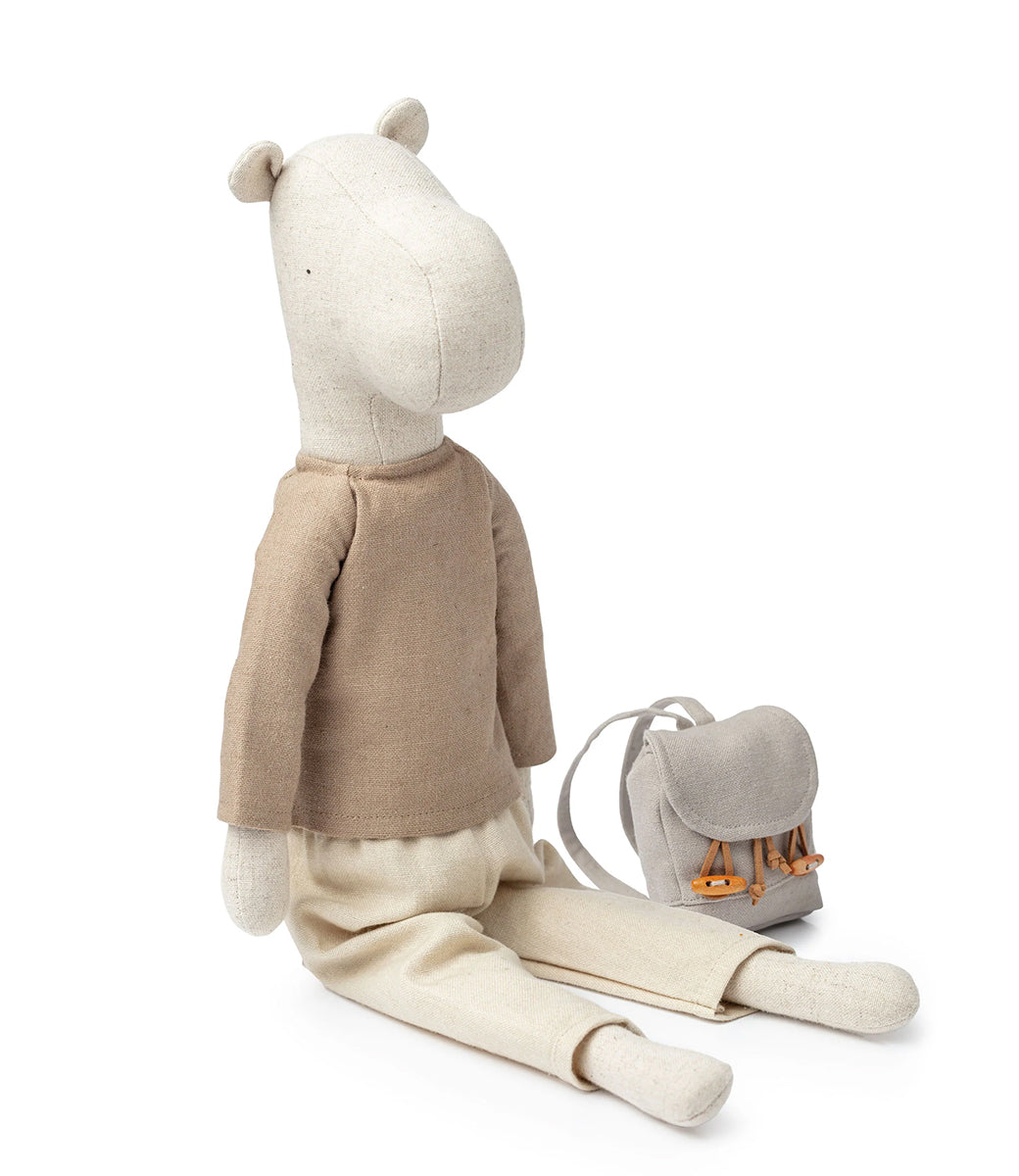 Herbert is een vriendelijke reus, geliefd om zijn grote maar knuffelbare gestalte. Hij is niet alleen een speelkameraadje voor thuis; Herbert is de perfecte metgezel voor spannende avonturen, altijd klaar om mee te doen met het plezier en blijvende jeugdherinneringen te creëren. Hoewel hij groot genoeg is voor troostende knuffels voor het slapengaan, is Herbert ook compact en draagbaar, zodat hij gemakkelijk in de tas van uw kind past voor plezier onderweg.