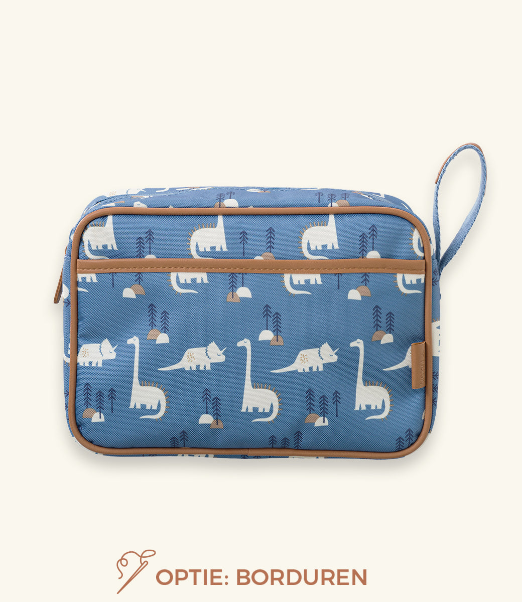 Stevige grote toiletzak met één groot compartiment en één zakje vooraan met magneetsluiting. Ideaal voor op kamp, voor babyspulletjes of zelf als make-up tas.